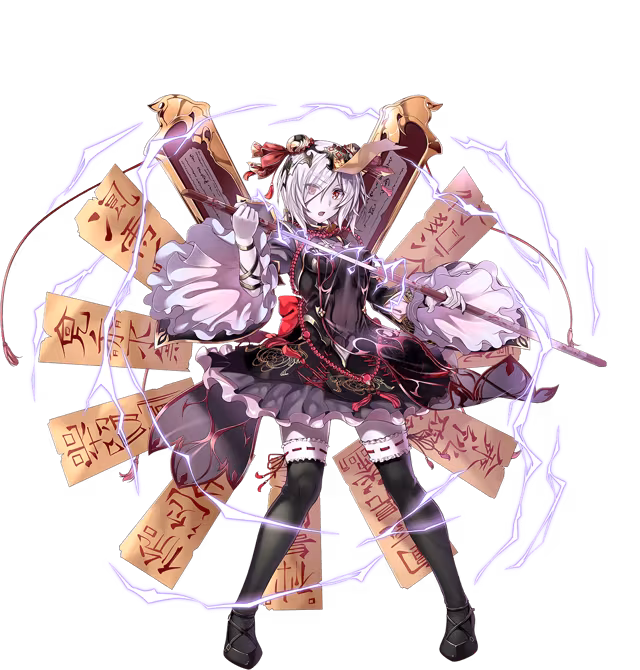 他ユニットからのHP回復を受けられない 貫通攻撃を行う 非ブロック中は遠距離の貫通攻撃を行う 敵をブロック時、攻撃力・防御力1.3倍、常に50%の確率で攻撃を無効化